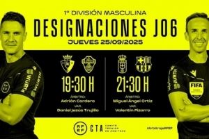 体育资讯9月24日讯 北京时间9月26日,2025-26赛季西甲联赛第6轮将进行两场比赛的较量,西班牙足协官方今日公布了两场比赛的裁判安排,奥蒂兹执法巴萨客战皇家奥维耶多。