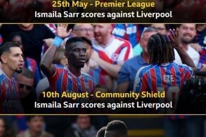 据统计,萨尔在近3次对阵利物浦的比赛中均有进球,分别是上赛季英超1-1双方战平,以及社区盾杯比赛打进关键扳平进球,助球队最终夺冠。